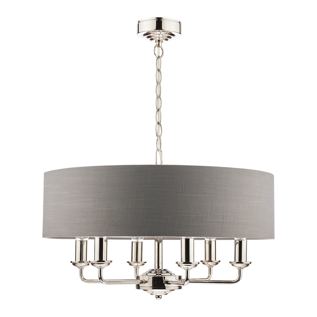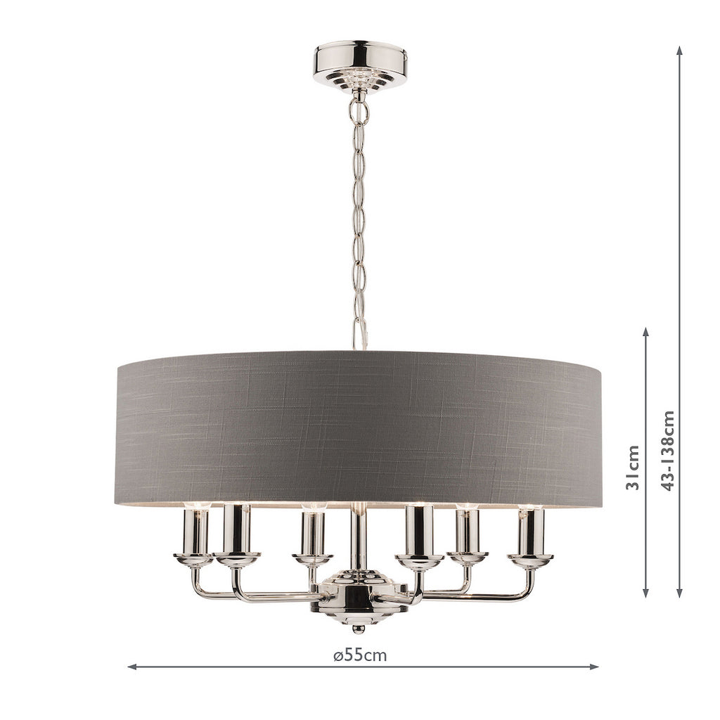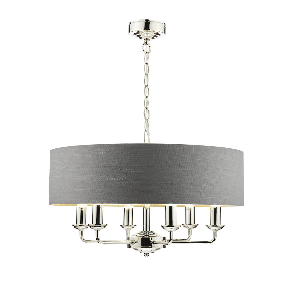 Laura Ashley Sorrento 6 Light Pendant Polished Nickel With Charcoal Grey Shade