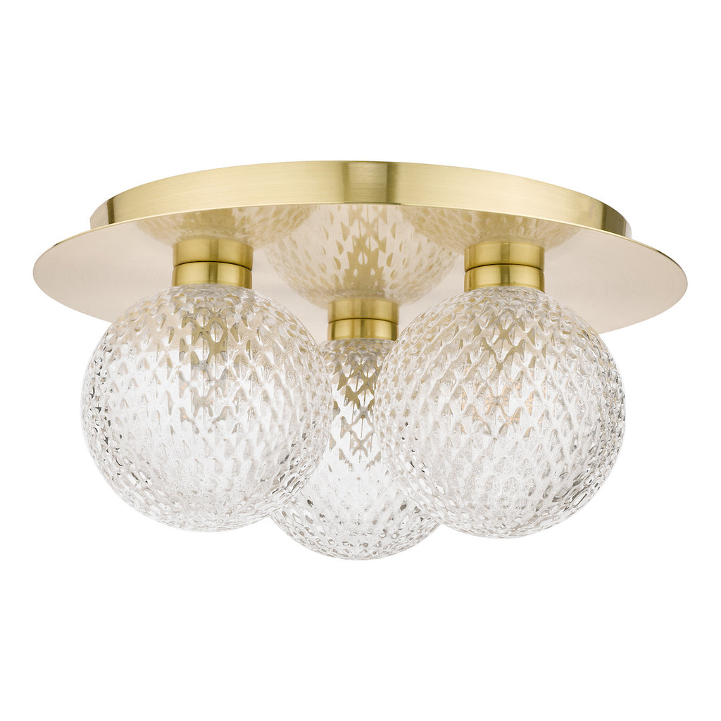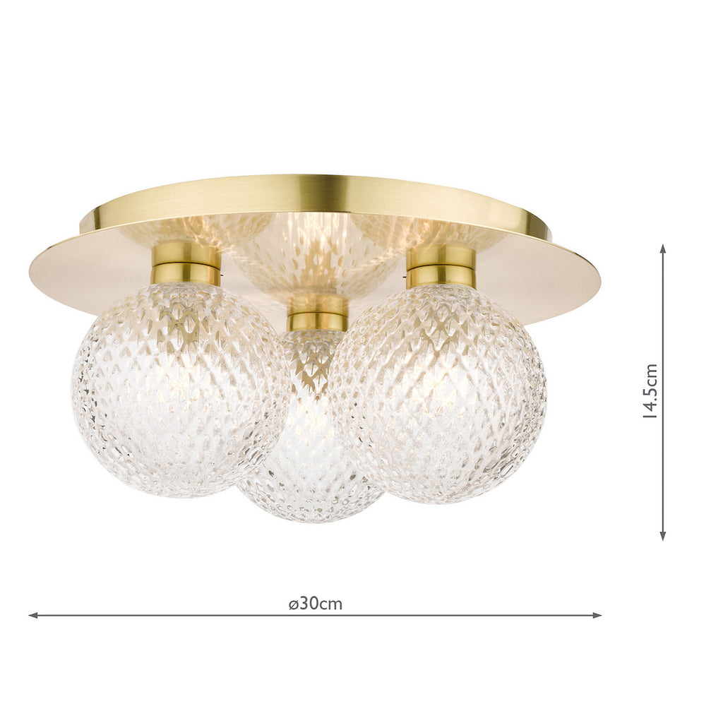 Laura Ashley Prague 3lt Flush Bathroom Light Glass Satin Brass IP44