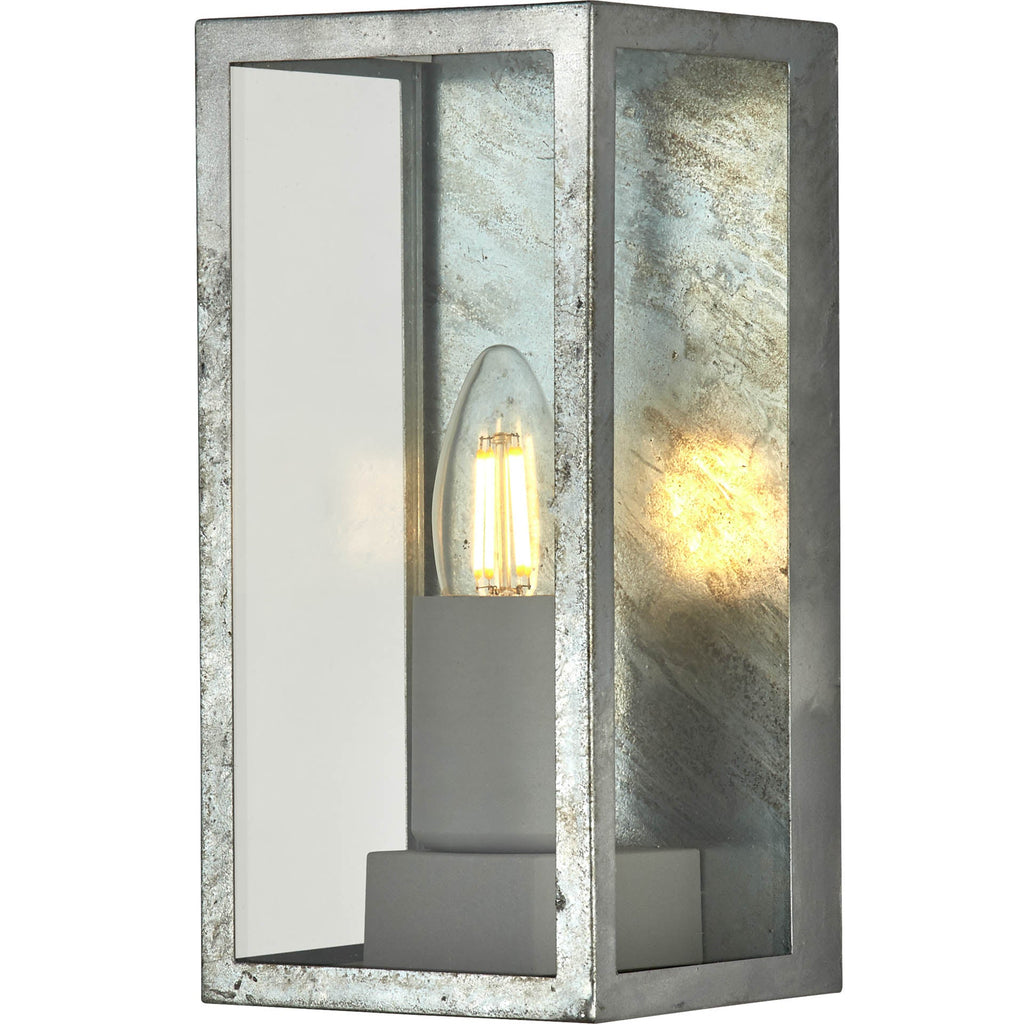 Box II Outdoor Wall Light - Galvanised Silver Metal & Glass