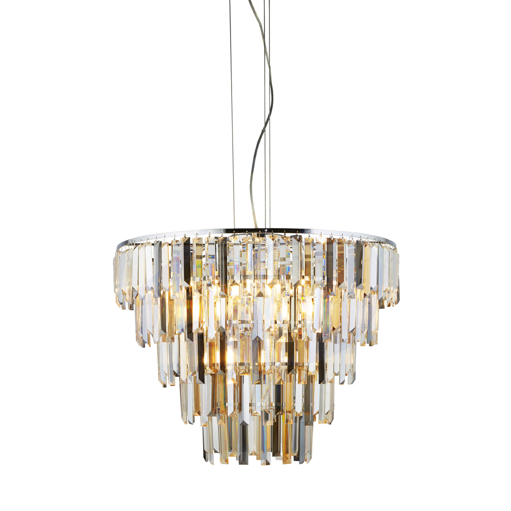 Clarissa 9Lt Pendant - Chrome & Clear, Smoked & Amber Glass