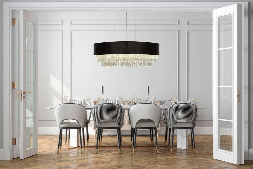 Glamour Oval Pendant - Black Velvet & Clear Crystal