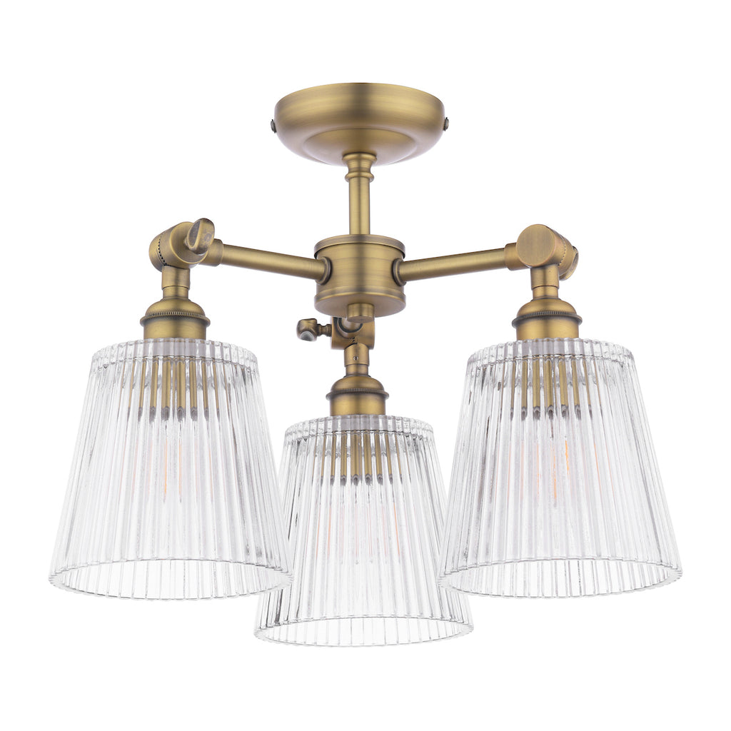 Laura Ashley Callaghan 3 Light Semi-Flush Matt Antique Brass and Ribbed Glass