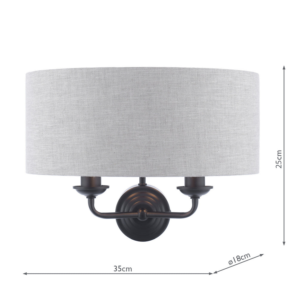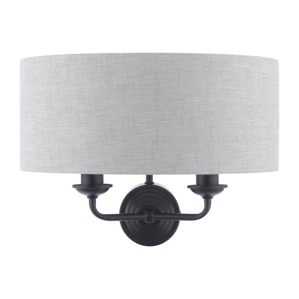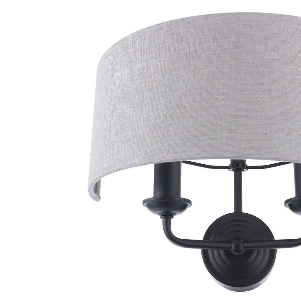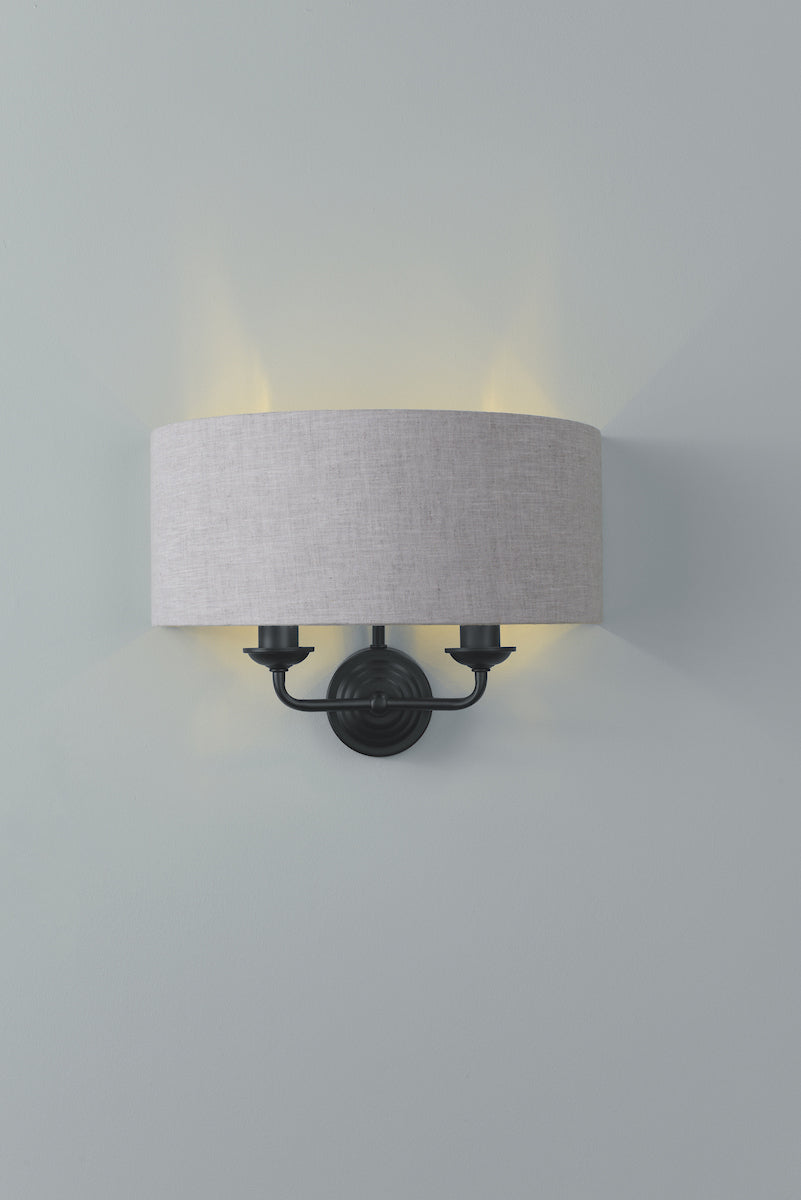 Laura Ashley Sorrento 2 Light Wall Light Matt Black With Natural Shade
