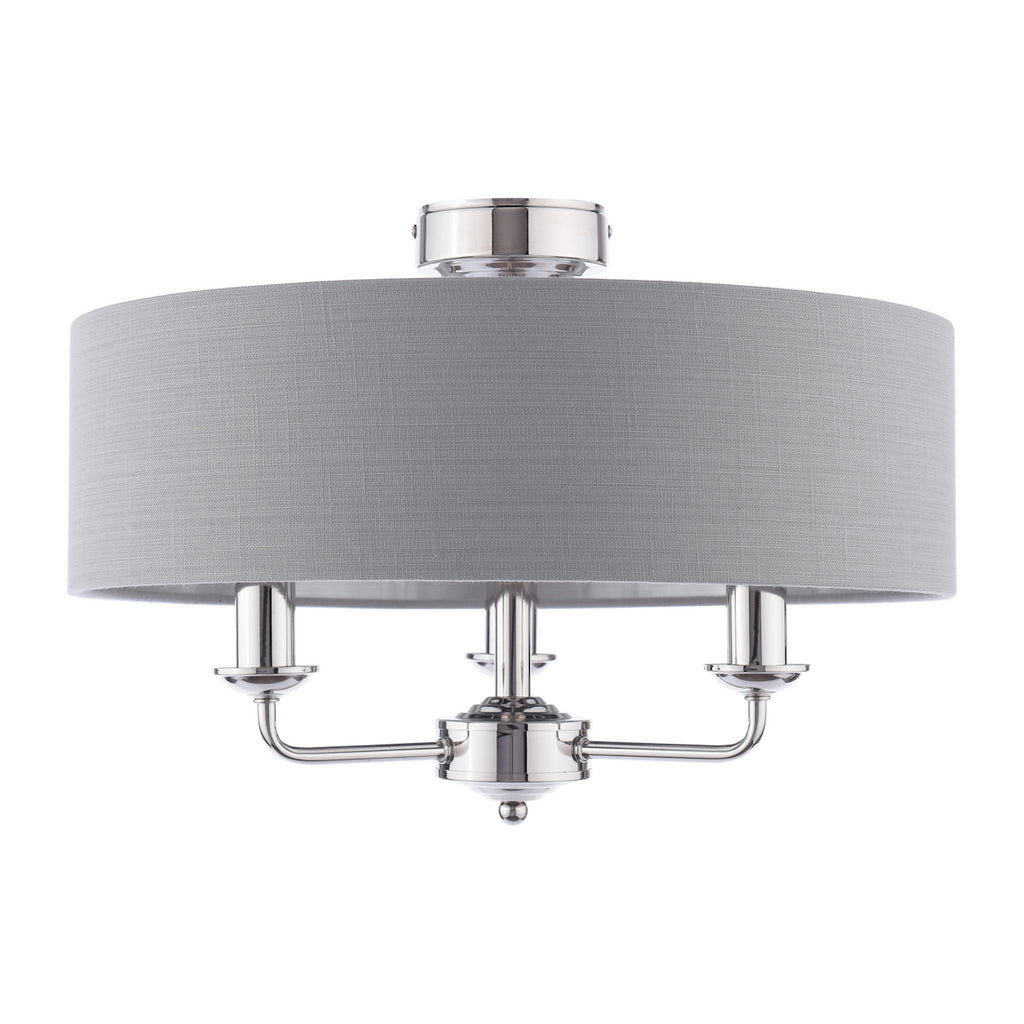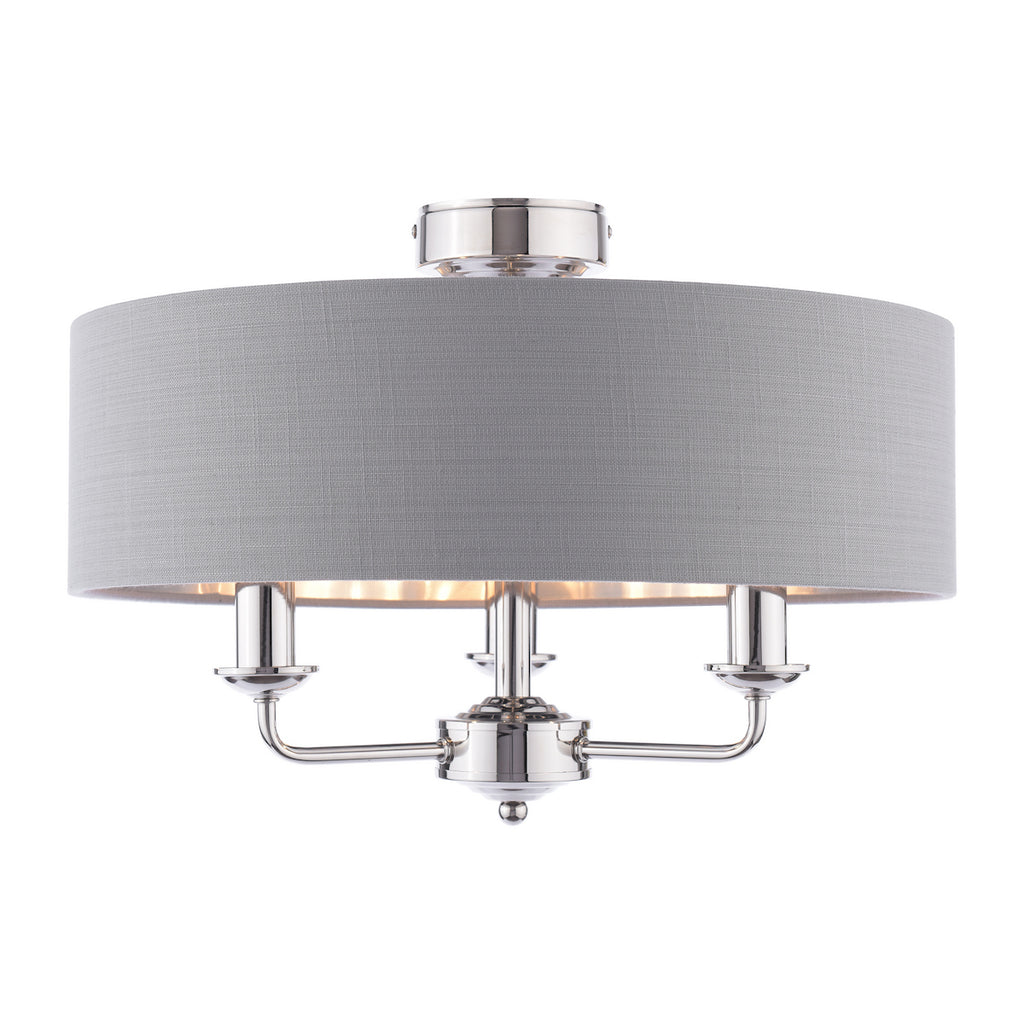Laura Ashley Sorrento 3 Light Semi-Flush Polished Nickel With Charcoal Shade