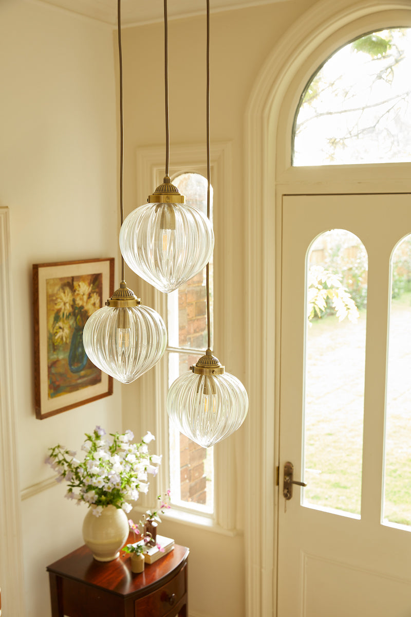 Laura Ashley Whitham 3 Light Cluster Pendant Antique Brass and Glass
