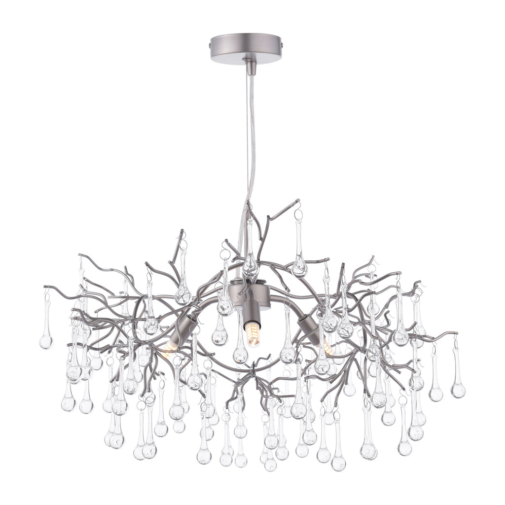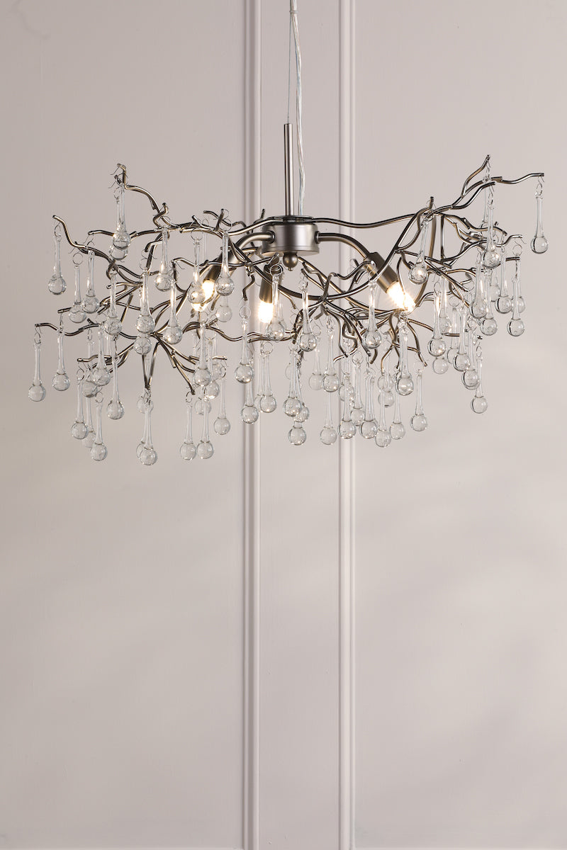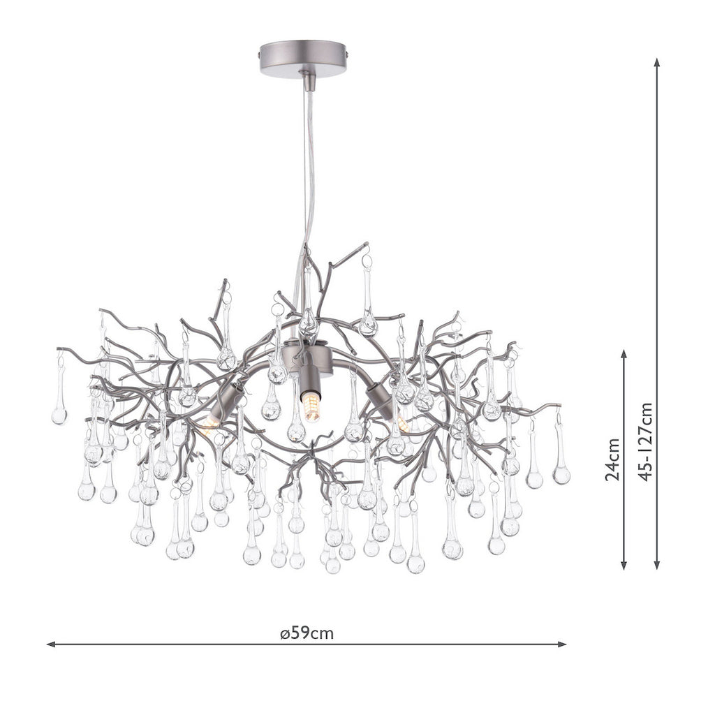 Laura Ashley Willow 3 Light Pendant Satin Pewter and Crystal