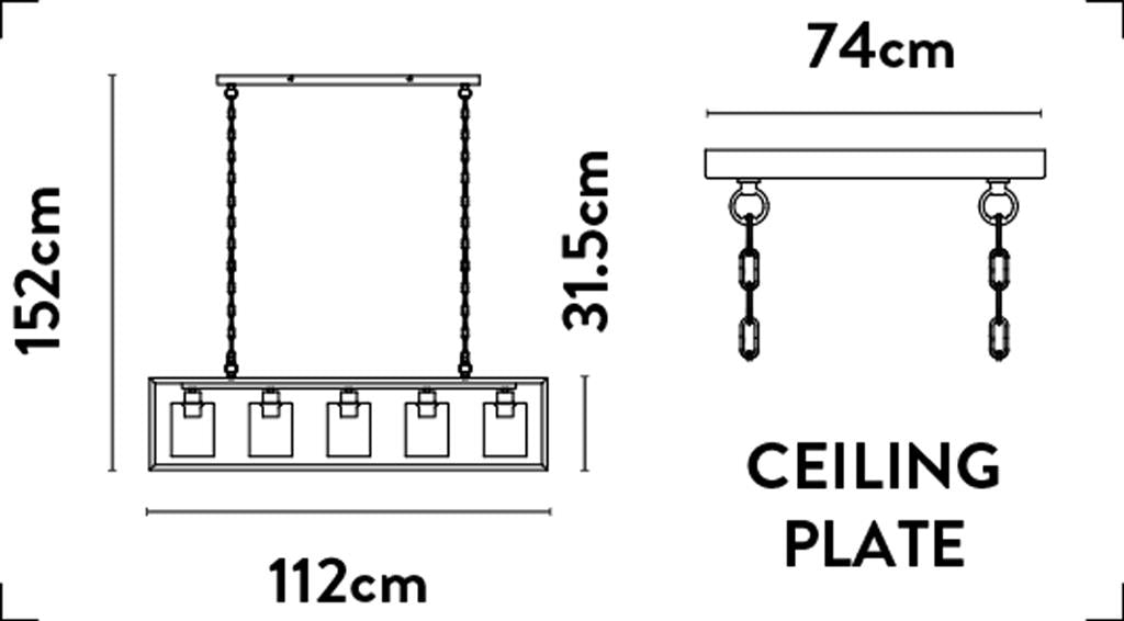 Lux & Belle 5LT Pendant-MattBlack&SatinBrass Metal,Clear Glass