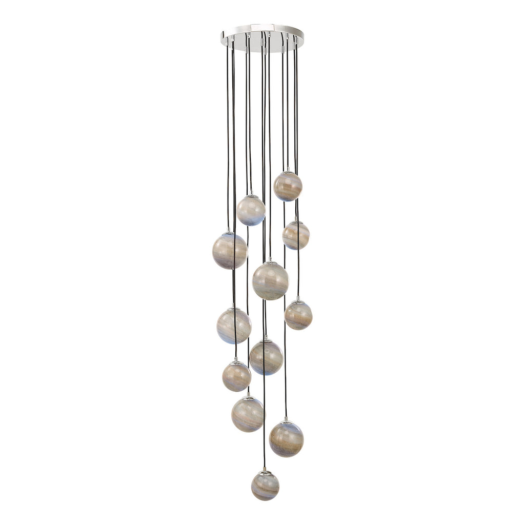Mikara 12LT Cluster Pendant, Planet Glass & Polished Chrome