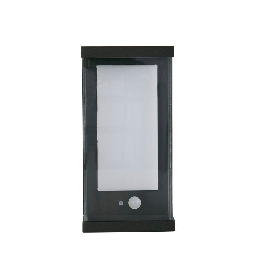 Solar Outdoor Wall Light - Black Metal & White Polycarbonate