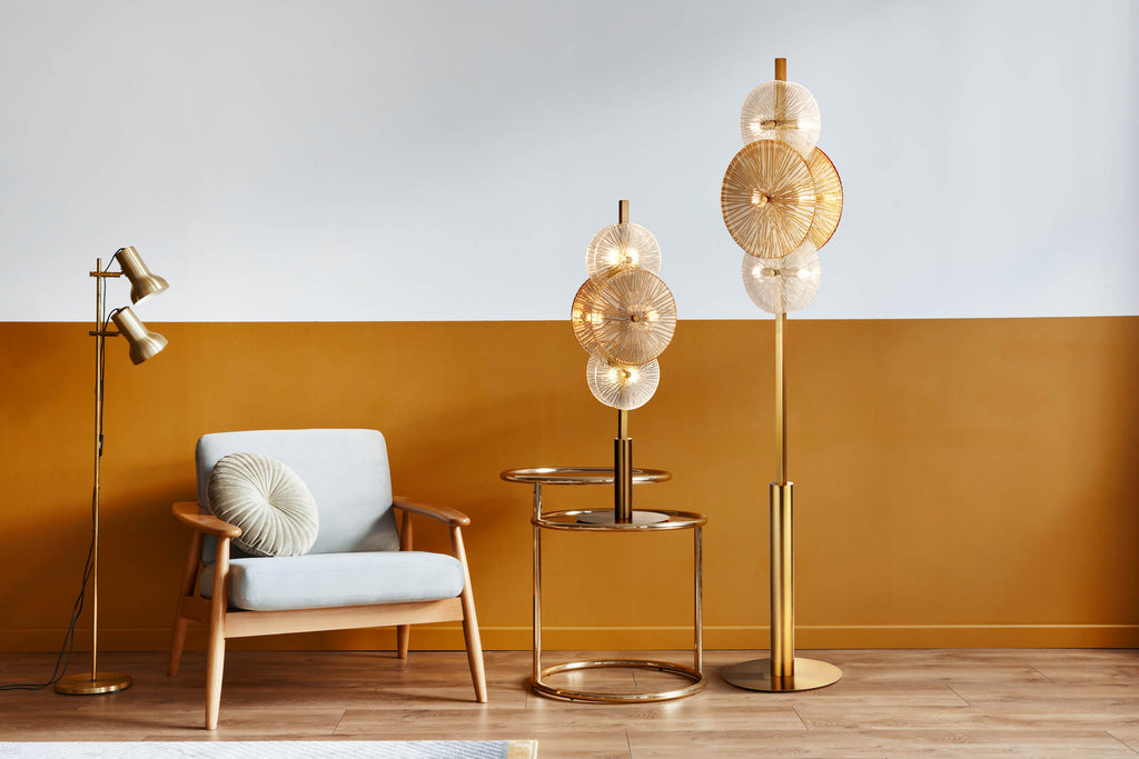 Wagon Wheel Table Lamp- Bronze Metal, Clear, Amber Glass